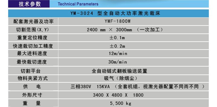 •   YM3024-1800W激光裁床機組