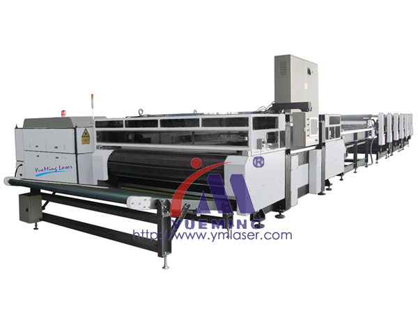 又一力作——YM-3024 型全自動大功率激光裁床,適用于大批量生產的卷料形式的各種織造物的裁切加工。