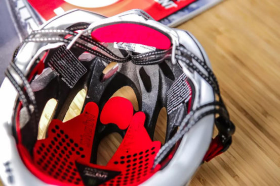 公路頭盔品牌SH+采用非接觸性的激光工藝在騎行頭盔襯墊進行切割,打出的孔洞邊口光滑無毛刺,不僅能保持頭部涼爽干燥達到通風和吸汗的效用,同時也能在戶外騎行中充當防蟲網,防止有蟲子進入頭盔內。