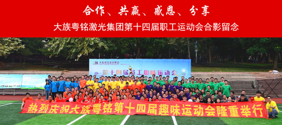 為豐富全體大族粵銘人的業(yè)余文化生活,促進(jìn)大族粵銘激光集團(tuán)的精神文明建設(shè)和企業(yè)文化建設(shè),提升集團(tuán)職工的向心力、企業(yè)的凝聚力和團(tuán)隊(duì)的戰(zhàn)斗力,11月18日,大族粵銘激光集團(tuán)以 “合作·共贏·感恩·分享”的核心企業(yè)文化為主題的第十四屆“粵銘杯”職工趣味運(yùn)動(dòng)會(huì)在松山湖國家高新區(qū)足球公園順利召開,大族粵銘激光集團(tuán)東莞管理本部、各個(gè)子公司和各個(gè)事業(yè)部共6支隊(duì)伍300多名職工和運(yùn)動(dòng)員參加本次比賽。