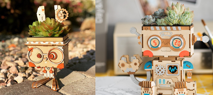 木質拼裝花盆托保留原木質地的溫暖感