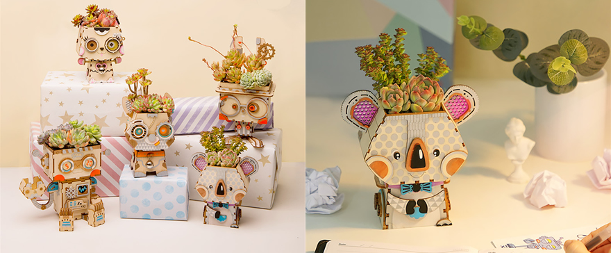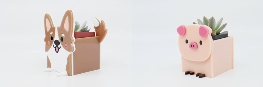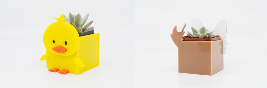 卡通小動物造型的花盆托迷你而精致
